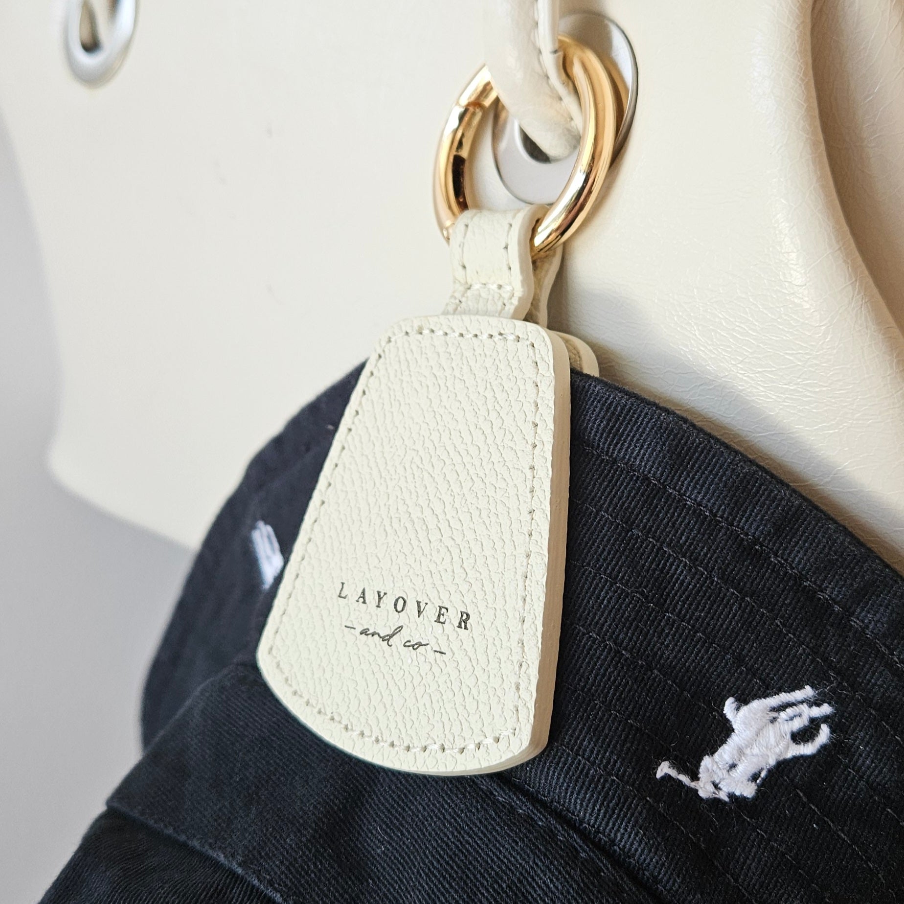 Our leather magnetic hat clip is crafted from full-grain, vegetable-tanned leather and finished with solid brass hardware; this premium hat clip delivers a sleek look and function. The extra-strong magnet closes with a snap to secure any style of hat while you move. Travel, beach days, tee times, city strolls—clip it and go.