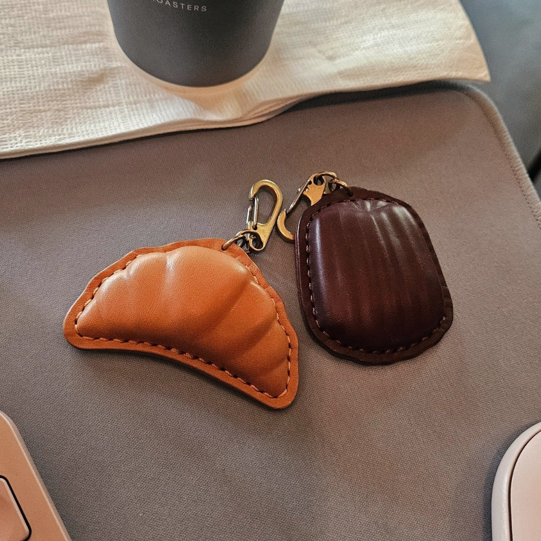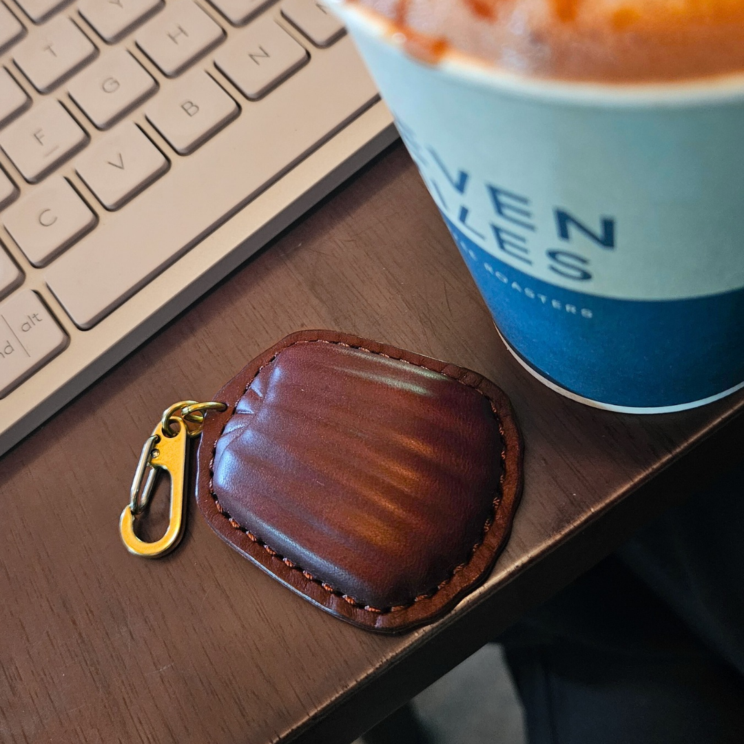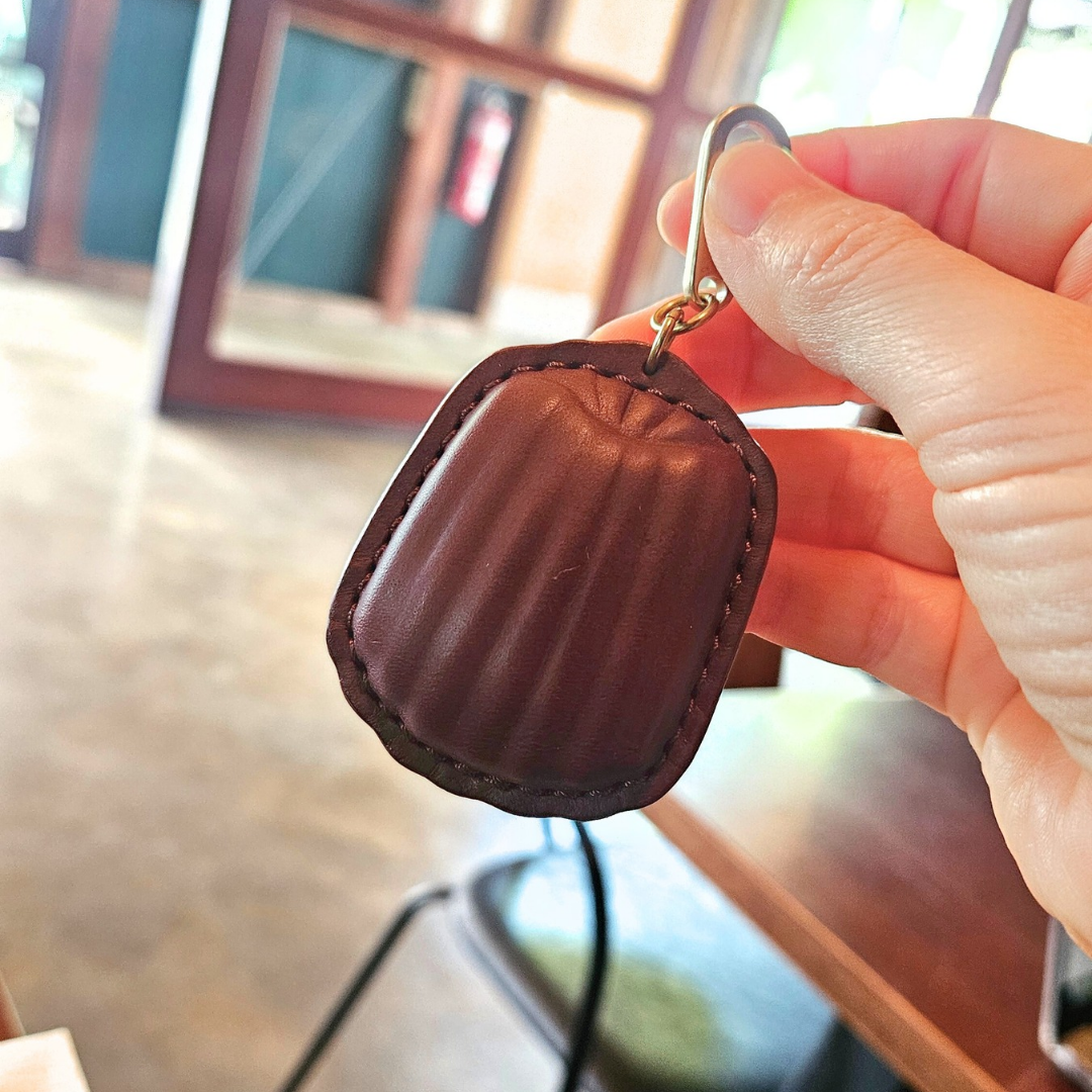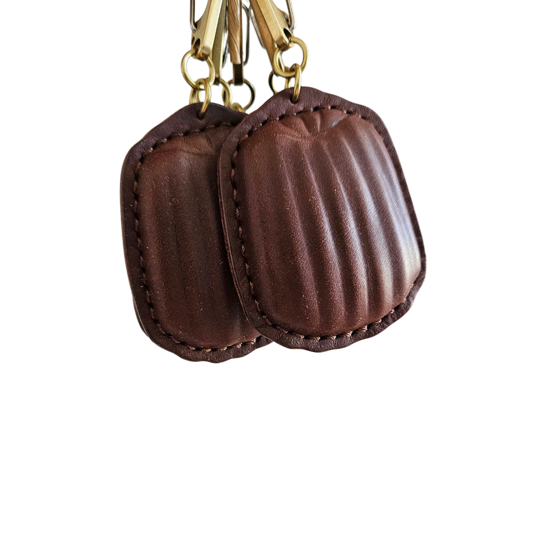 Our Canelé keyring is a nod to the classic French pastry: rich, ridged, and irresistibly charming. Carefully hand-stitched from premium vegetable-tanned leather, each piece is shaped and burnished to resemble the fluted mold of the real deal. It’s a conversation starter, a luxe little detail, and a playful way to show your love for craft—both in baking and in leatherwork.